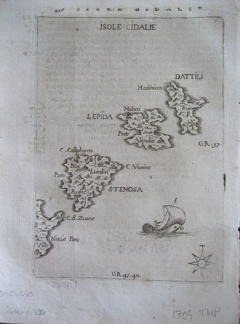 "Danoussa and Makaries Islands, Lesser Cyclades" "Isole Cidale" Modena "Eredi Soliani stampatori Ducali" 1688