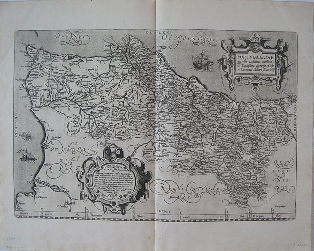 Copper engraved map of Portugal from Ortelius' "