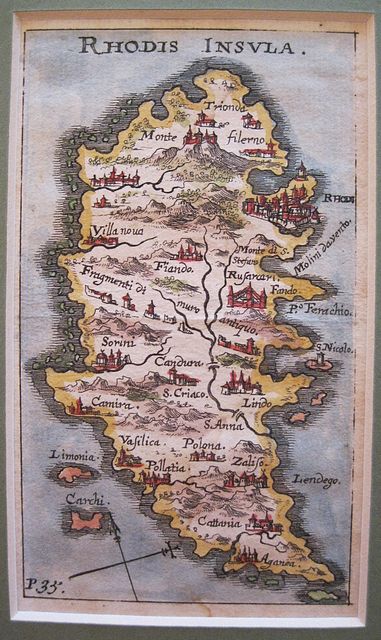 Sandrart, Jacob von . The Island of Rhodes. "Rhodis Insula" Nurnberg Sandrart, Jacob von . 1682-6