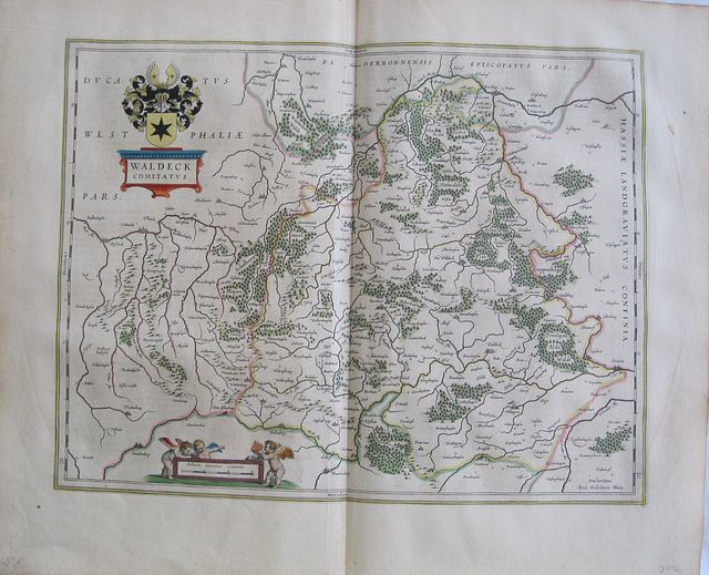 Original coloured, copper engraved map of Waldeck from volume 1 of Joan Blaeu's "