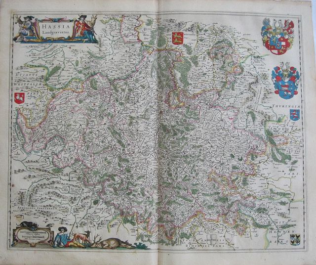 Original coloured, copper engraved map of Hessen from volume 1 of Joan Blaeu's "