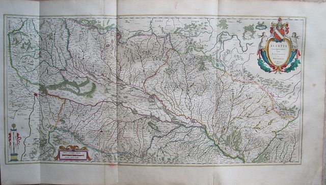 Original coloured, copper engraved map of Alsace, from volume 1 of Joan Blaeu's "