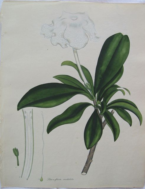 The plate shows the Waved-flowered Brunsfelsia a native of the West Indies. Printed in green and coloured by hand by Andrews; some minor spots; upper margin shaved: no plate number.