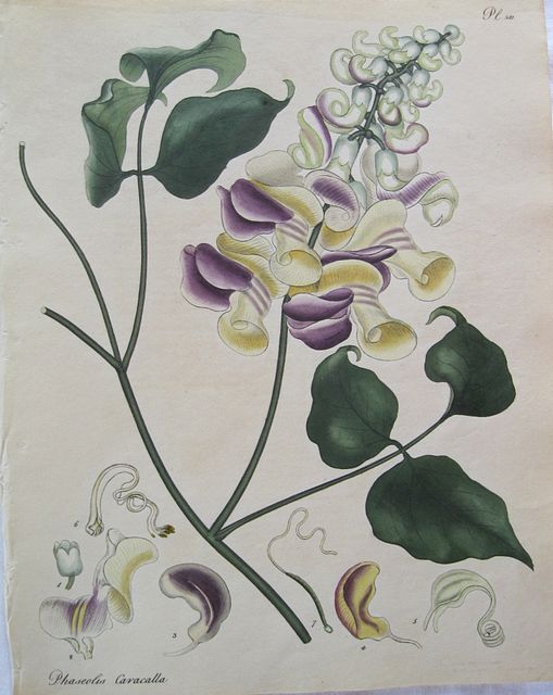 Original coloured engraving of the Snail-flowered Kidney-Bean from Henry Andrew's "