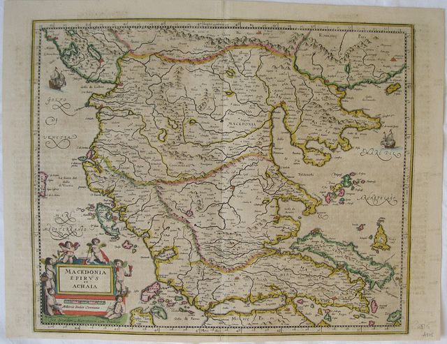 Copper engraved map of Macedonia, Epirus & Achaia by Mercator, published by Janssonius in his "
