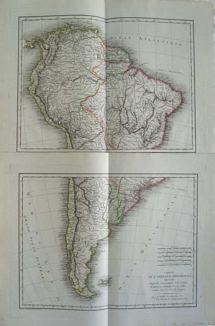 Carte de l'Amérique Méridionalé, Dressée d'aprèsles Observations et les Cartes de MM. de la Condamine, La Cruz, Ulloa, Antoine Cornel et Jean Langara." Paris E. Mentelle & P.G. Chanlaire. 1806