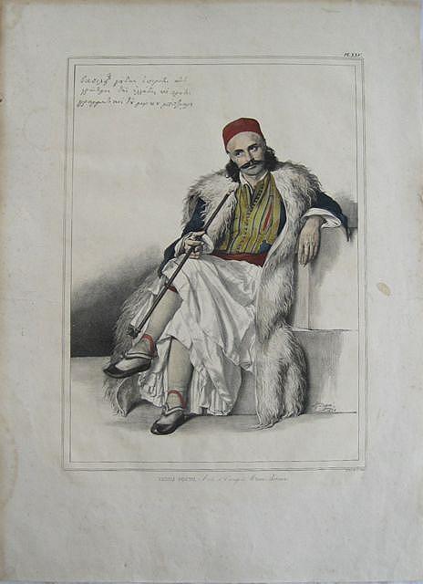 Coloured lithograph of Vasilis Goudas from Louis Dupré's "