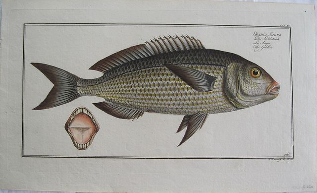 The Goldlin. "Sparus Salpa. Der Goldstrich. La Saupe. The Goldlin." Berlin. M.E. Bloch. 1782-1784 & 1785-1795