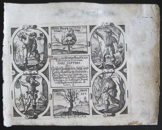 Thesaurus philo-politicus, Black & white; text in Latin and German below image. From the 7th part numbered "G".