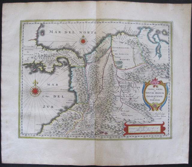 Descriptio Terræ Firmæ, Novi regni Granatensis, et Popayan. "Terra firma et Novum Regnum Granatensis et Popayan." Amsterdam Apud Johannem Guiljelmi F. Blaeu. c1655