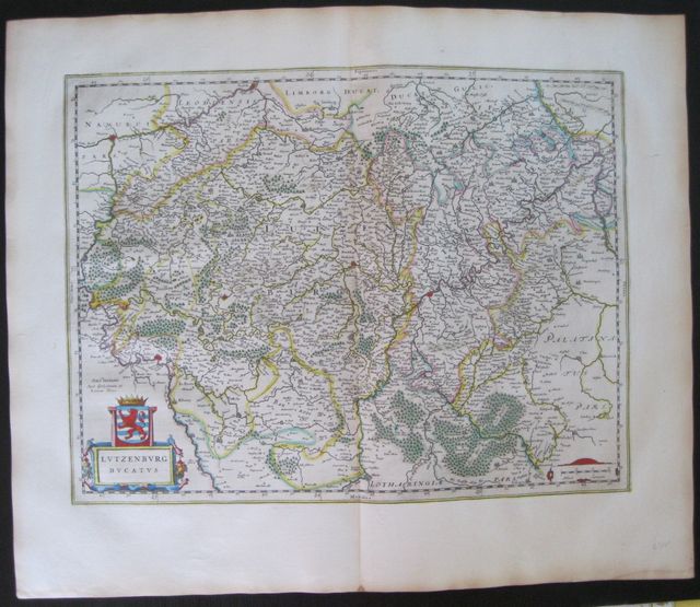Original coloured, copper engraved map of the Duchy of Luxembourg from Blaeu's "