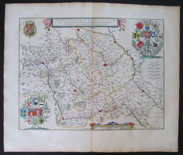 Original coloured, copper engraved map of French Flanders from Blaeu's "
