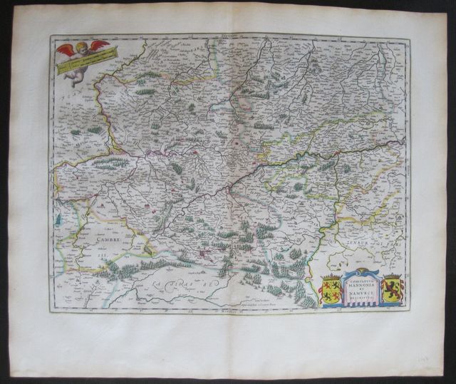 Original coloured, copper engraved map of Hainaut and Namur from Blaeu's "
