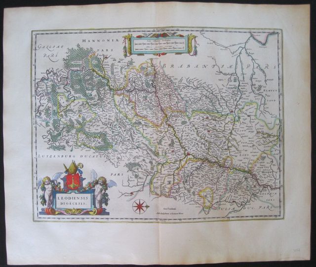 Original coloured, copper engraved map of the Diocese of Leige from Blaeu's "