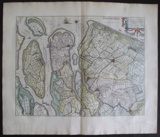 Original coloured, copper engraved map of South West Holland from Blaeu's "