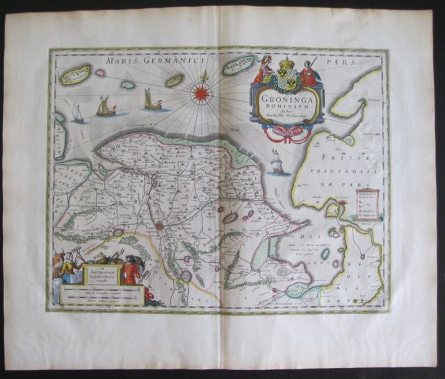 Original coloured, copper engraved map of Groningen, Northern Holland from Blaeu's "