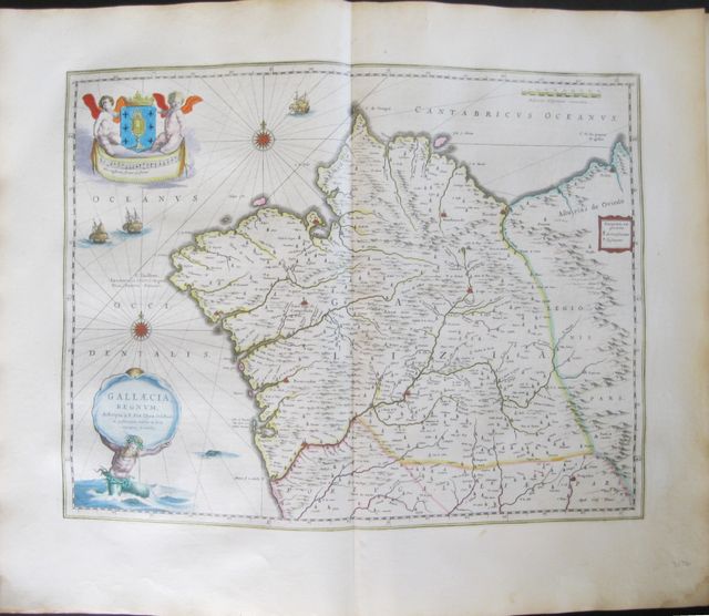 Original coloured, copper engraved map of Galicia from volume 2 of Joan Blaeu's "