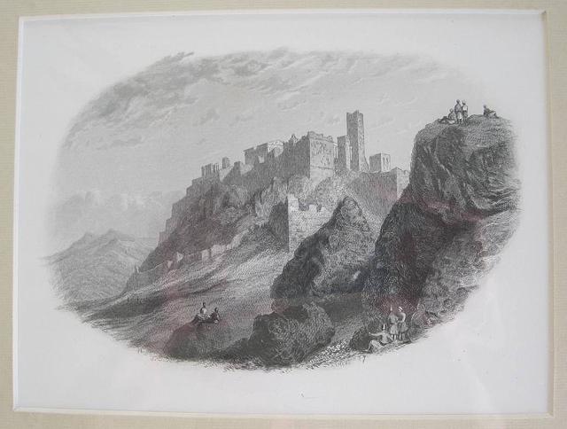 The view shows the Acropolis and the the rock of Areopagus; viewed from below Areopagus the vieew shows part of the propylion and the Venetion tower. Clean and bright, under passepartout.