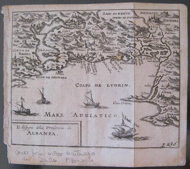 Copper engraved miniature map of the coast of Albania from Sandrart's: