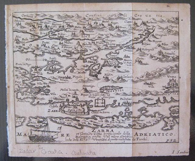 The map shows the city and island of Zadar/ Zara. Folded; Light toning.